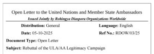 বিশ্বজুড়ে ছড়িয়ে থাকা রোহিঙ্গা প্রবাসী সংগঠনগুলো জাতিসংঘ ও সদস্য রাষ্ট্রগুলোর